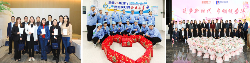 公司为每名女职工精心准备了红枣芝麻派作为礼品,以表达公司对广大女职工的节日问候与美好祝福。礼品发放现场,欢声笑语不断,每位女员工的脸上都洋溢着喜悦之情,礼品捧在手中,温暖溢于心里。此外,平安银行作为公司合作伙伴,在妇女节当天,携包装精美的竹编礼盒与鲜花花束来到公司研发一楼,为公司理级及以上女主管送来了别致的节日祝福。