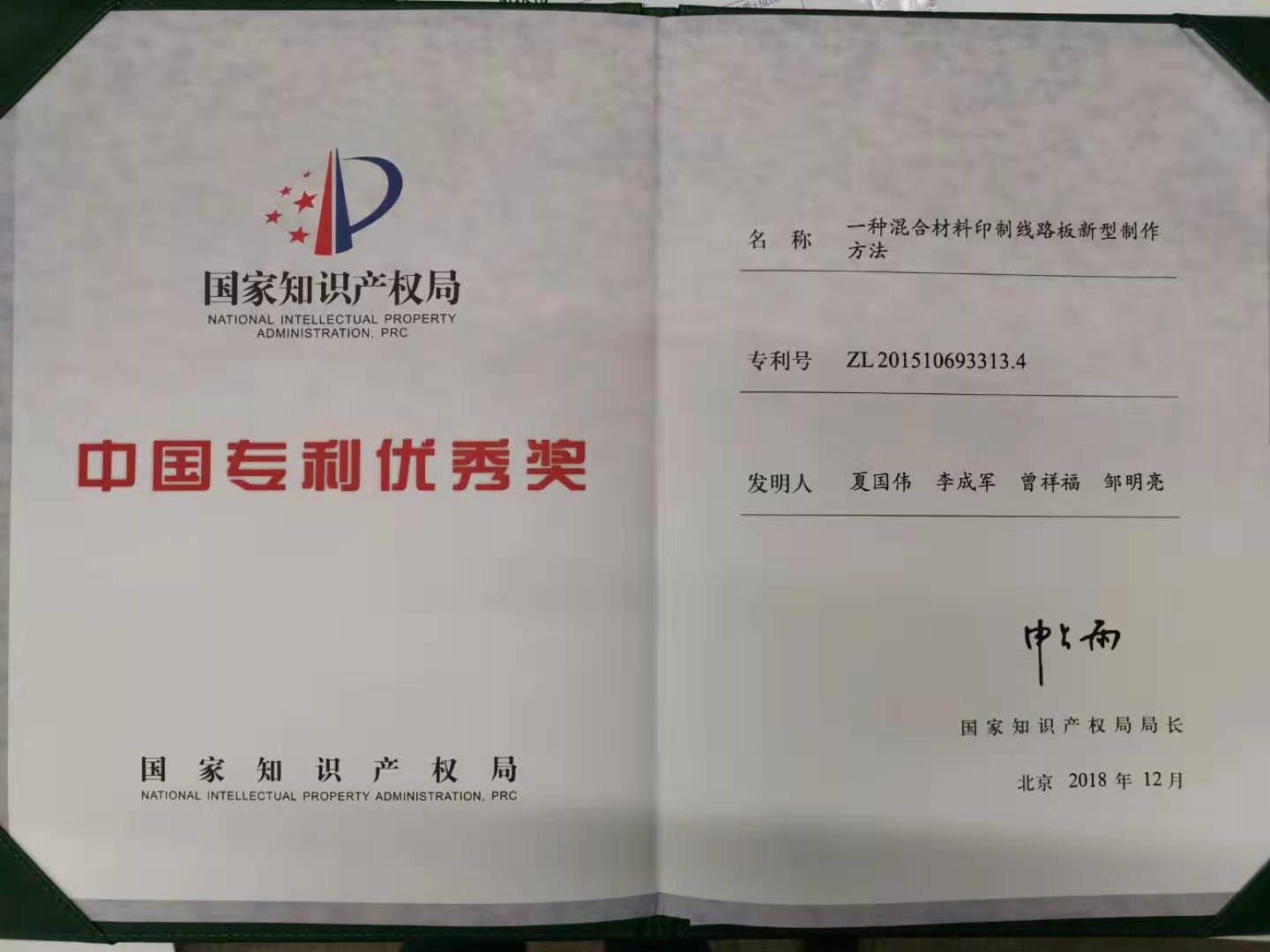 第二十届中国专利优秀奖